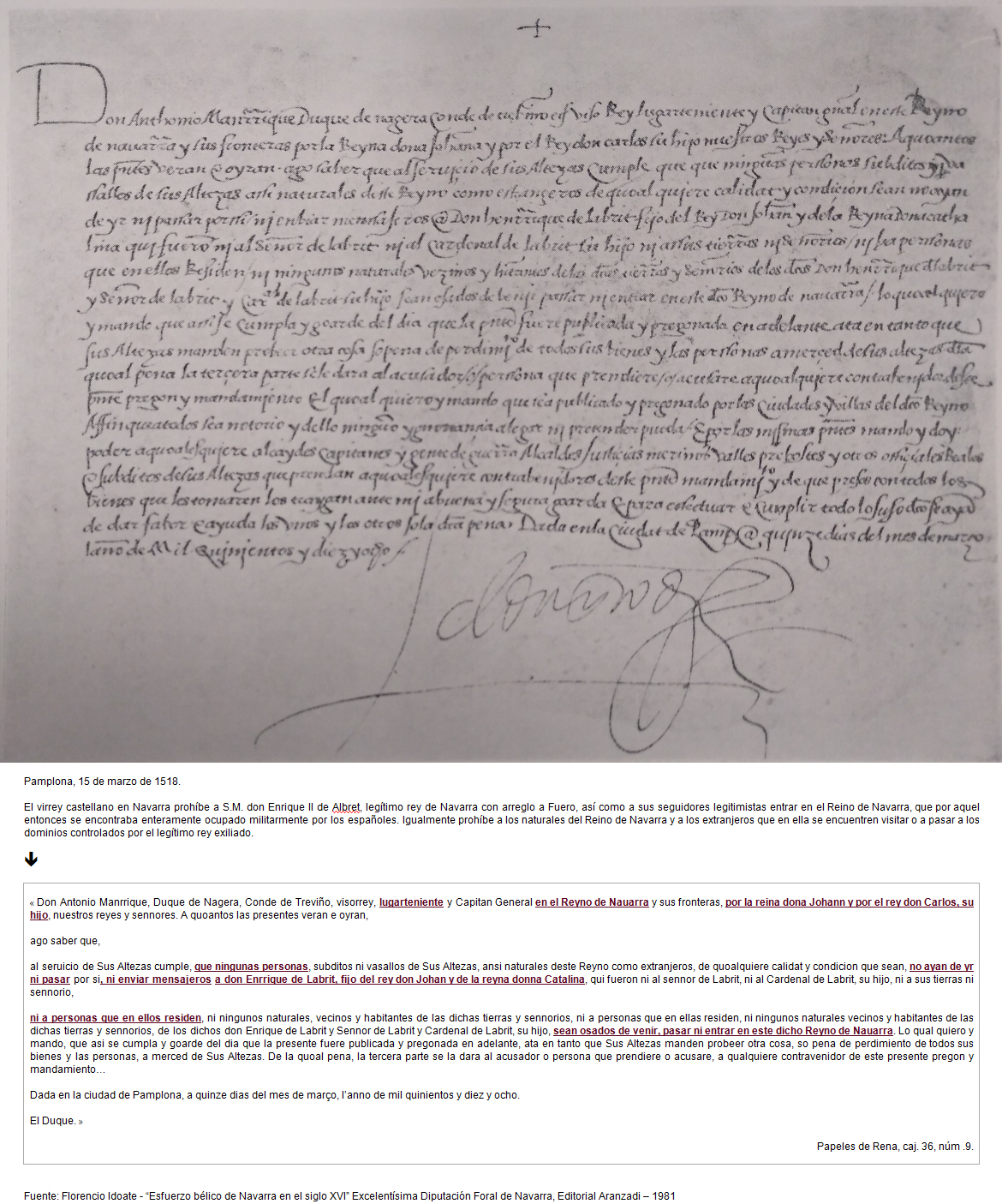 1518 prohibió al huérfano monarca "sangüesino" que en