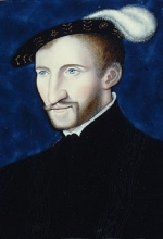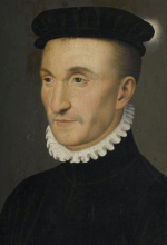 Representación coetánea de S.M. el rey Enrique II de Albret en un medallón de la página 240 del segundo libro del "Promptuaire des médailles (...)" editado en 1553 por el librero humanista Guillaume Rouillé (h.1518-†1589). |