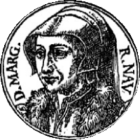 [ "(...) Paralelamente la reina consorte de navarra S.M. doña Margarita continuaba con su creación literaria, y entre 1527 y 1529 escribió la obra "Le Miroir de l'âme péchereuse" (El Espejo del alma pecadora). Ante la especial efervescencia que los problemas religiosos comenzaban a tener en Francia tras emerger imparable la "Reforma", Margarita tenía bien definida sus convicciones; defendía la reforma religiosa dentro de la propia iglesia. La reina Margarita comienza a proteger y a acoger en la corte Navarra a reformistas y humanistas, estableciendo en la corte de Pau un foco de humanistas y refugio de protestantes, que comienzan a ser perseguidos por toda Francia por universidades y parlamentos, y por una institución constituida a tal efecto, la Facultad Teológica de la Sorbona, que los considera "herejes". Por toda Francia centenares de sospechosos o convictos de herejía son quemados, ahorcados o degollados, convirtiéndose el territorio francés durante esos meses en un campo de delaciones, de conspiraciones, de huidas y de capturas. Muchos de los perseguidos se refugian al abrigo de la Corte de la reina de Navarra, que ante tal actitud, pronto pasará a ser también diana de otras instituciones. La universidad de París incluye su obra "Le Miroir de l'âme péchereuse" en su lista anual de libros prohibidos, por lo que deberá defenderse de insultos y calumnias. Para soportar mejor las presiones, hacia 1530 la reina abandona Pau y se establece con su corte en Nérac, futura capital del ducado de Albret. En Angulema parece que nace el 7 de julio de 1530 el príncipe de Navarra Juan41.7, único varón de Enrique II y Margarita. En Nérac Margarita continuará protegiendo y defendiendo a humanistas sospechosos de herejía, víctimas de la facultad teológica de la Sorbona, del Parlamento de París y de la intolerancia de la época, violentados aún más tras las bulas papales (enero de 1534) contra los protestantes franceses. Entre sus protegidos, acogidos y defendidos más ilustres figuran Lefèvre d'Etaples (al que nombrará preceptor de sus hijos), Pedro Caroli, Marical Mazurier, Guillermo Farel, Gerardo Roussel, Francisco Vatable o Miguel de Aranda. La posición teológica de los protegidos por la reina Margartia difiere de los reformadores luteranos en su convicción de que cualquier reforma no puede tener lugar sino en el seno de la Iglesia, y no fuera de ella. Aún así, en la corte de Margarita también recibió acojo Calvino, aunque pronto abandonará Nérac, al no ser bien visto por los teólogos y humanistas evangélicos protegidos por la reina, mucho más ortodoxos que el protestante Calvino. (...)" |