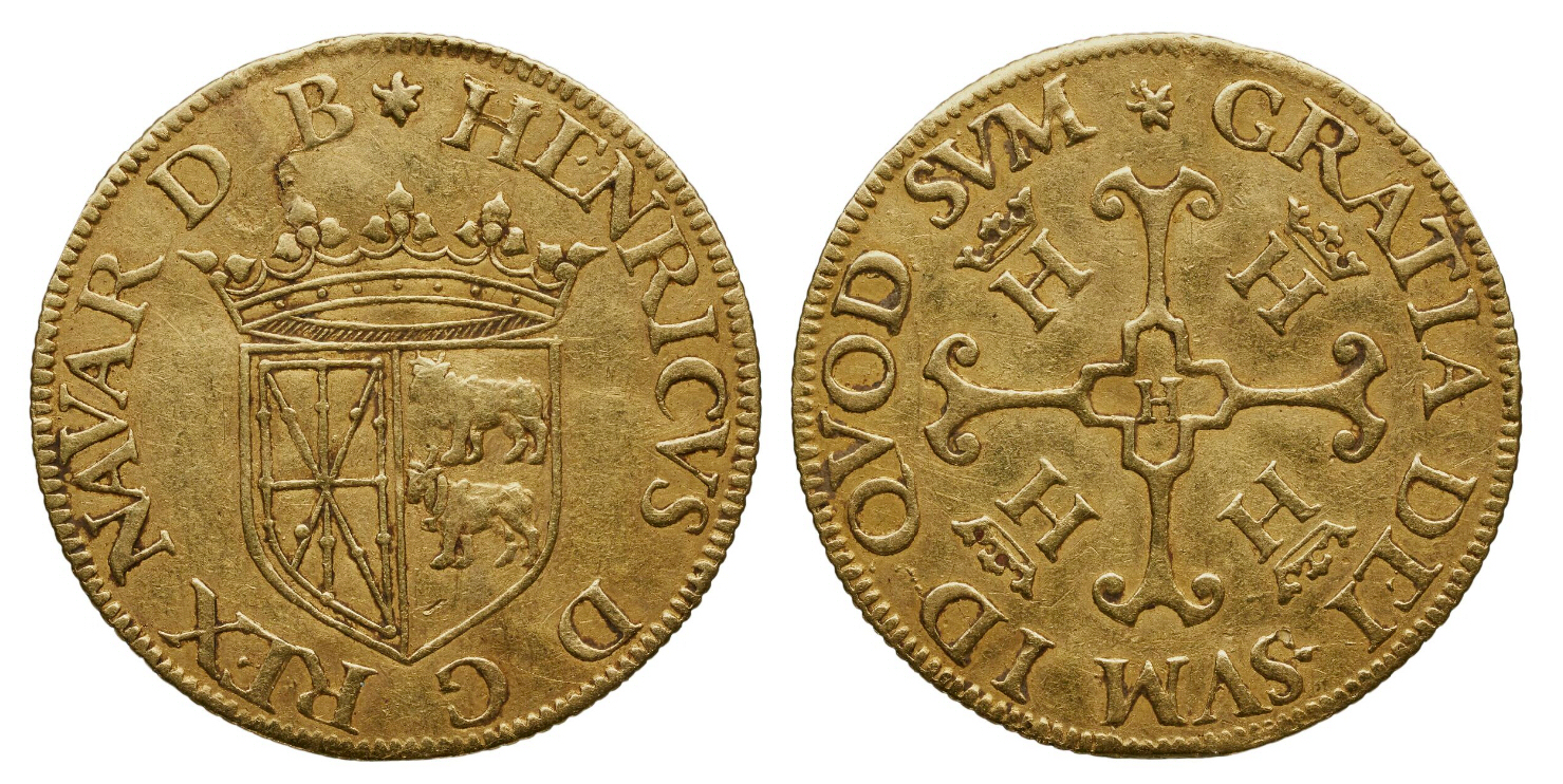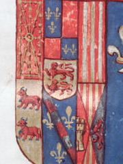 HERÁLDICA:Su Majestad don Enrique II de Navarra dispuso de corona real y armas heráldicas, cuyas características se detallan a continuación: