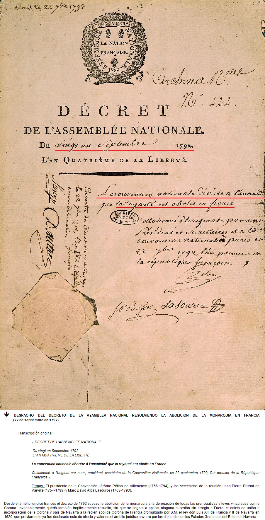 régimen" (05/08/1789), o de la abolición de la "monarquía francesa" (21/09/1792), o de la constitución legal de los cinco regimenes