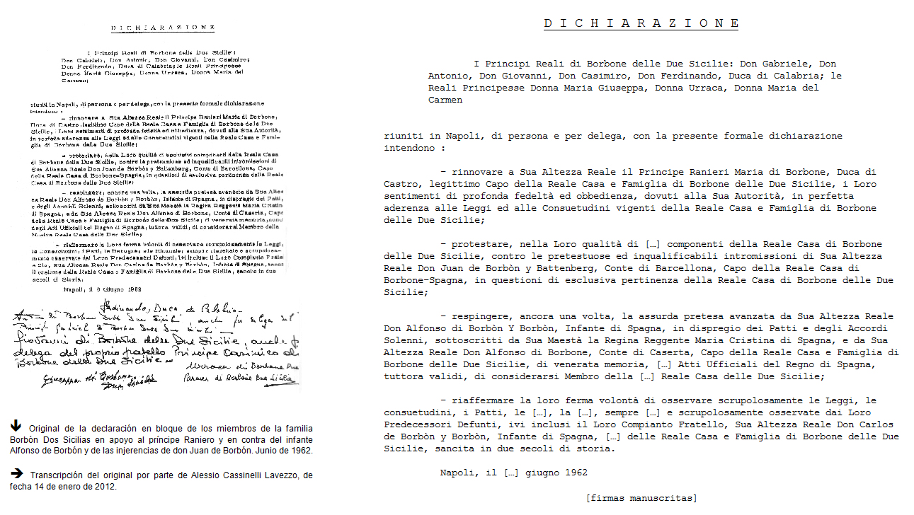 en cuanto a la familia de los Borbón Dos Sicilias, desde el fallecimiento de