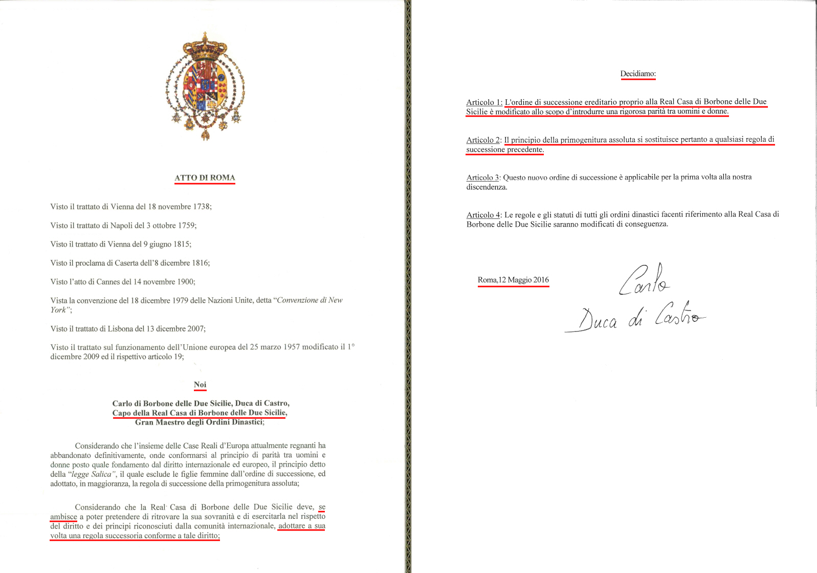 las reglas de sucesión de la Casa Real de Borbón Dos Sicilias, contrariando nuevamente a su