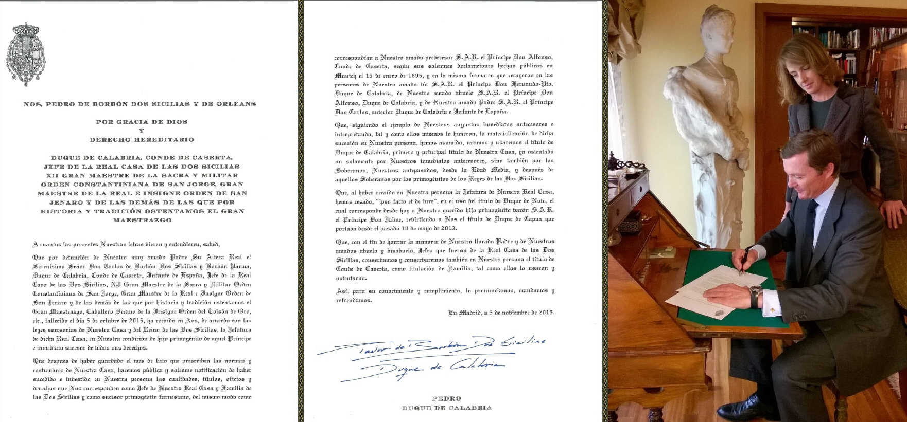 (05/10/2015), su hijo y sucesor S.A.R. el príncipe don Pedro también ostentará la