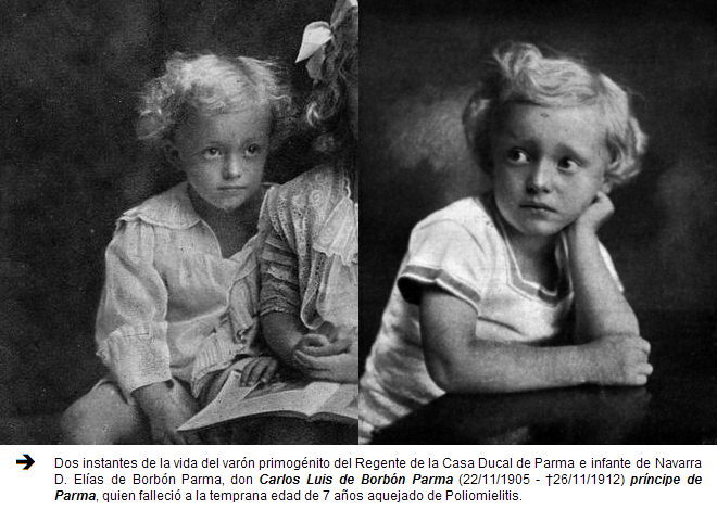 [ El fallecimiento del primogénito y heredero de Elías de Borbón Parma no alteraba la condición de regente del afligido padre, que al no ser el primogénito de la familia preservaba con el ejercicio de la regencia el derecho dinástico de sus dos hermanos mayores Enrique y José. Con gran dignidad el príncipe de Parma e infante de Navarra declinó honores y prerrogativas que en derecho correspondían ejercer a su hermano mayor S.M. don Enrique V "el Discapacitado". Así, decidió no conceder ni distribuir las órdenes del ducado de Parma como hiciera su padre don Roberto I, verbigracia las insignias de la Orden Constantiana de San Jorge, del Orden de San Jorge al Mérito Militar o las de la Orden del Mérito de San Luis de Parma, uno de los pocos actos de soberanía que estaba en su mano ejercer como Jefe de la Casa Ducal en el exilio. Al tener dos hermanos mayores dinastas don Elías tampoco fue creado infante de España, dignidad reservada históricamente al primogénito de la Casa Ducal de Parma. Declinó explícitamente a su vez el ofrecimiento del Toisón español que le hizo el rey Alfonso XIII por no contrariar el Toisón austriaco que previamente le había otorgado el emperador Franciscó José I. En contraprestación sí aceptó el cruzamiento como Caballero de la Órden Militar de Santiago que le ofreció el rey de España Alfonso XIII.