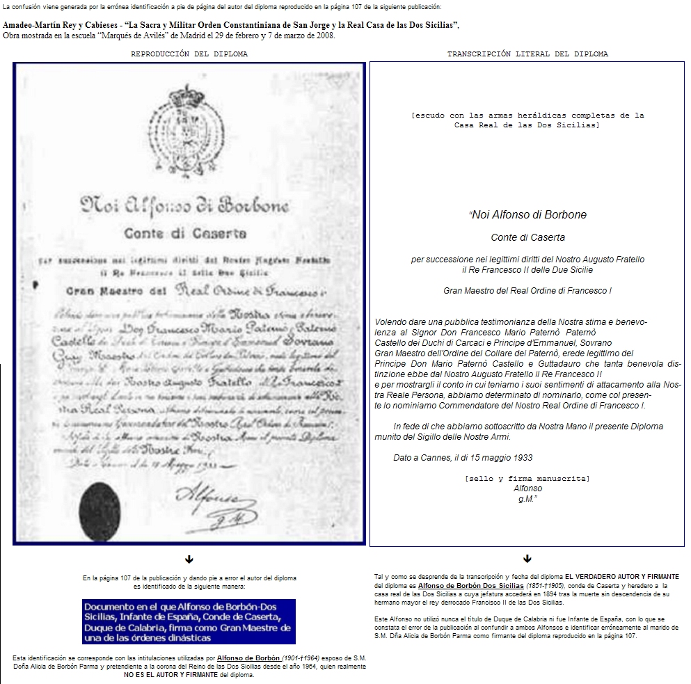 simultáneamente su abuelo paterno (Alfonso de Borbón) y bisabuelos paternos (Carlos Tancredo