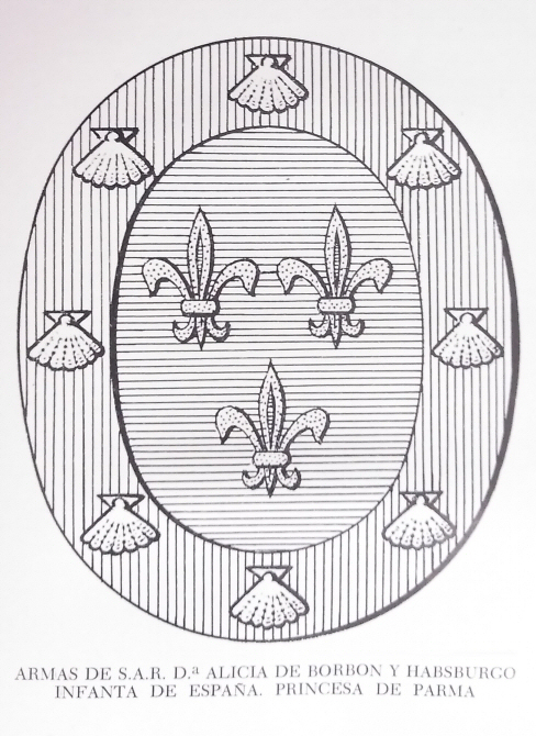 HERÁLDICA:Su Majestad doña Alicia de Borbón Parma en su condición de reina titular de Navarra tuvo el escudo de armas cuyas características se detallan a continuación: