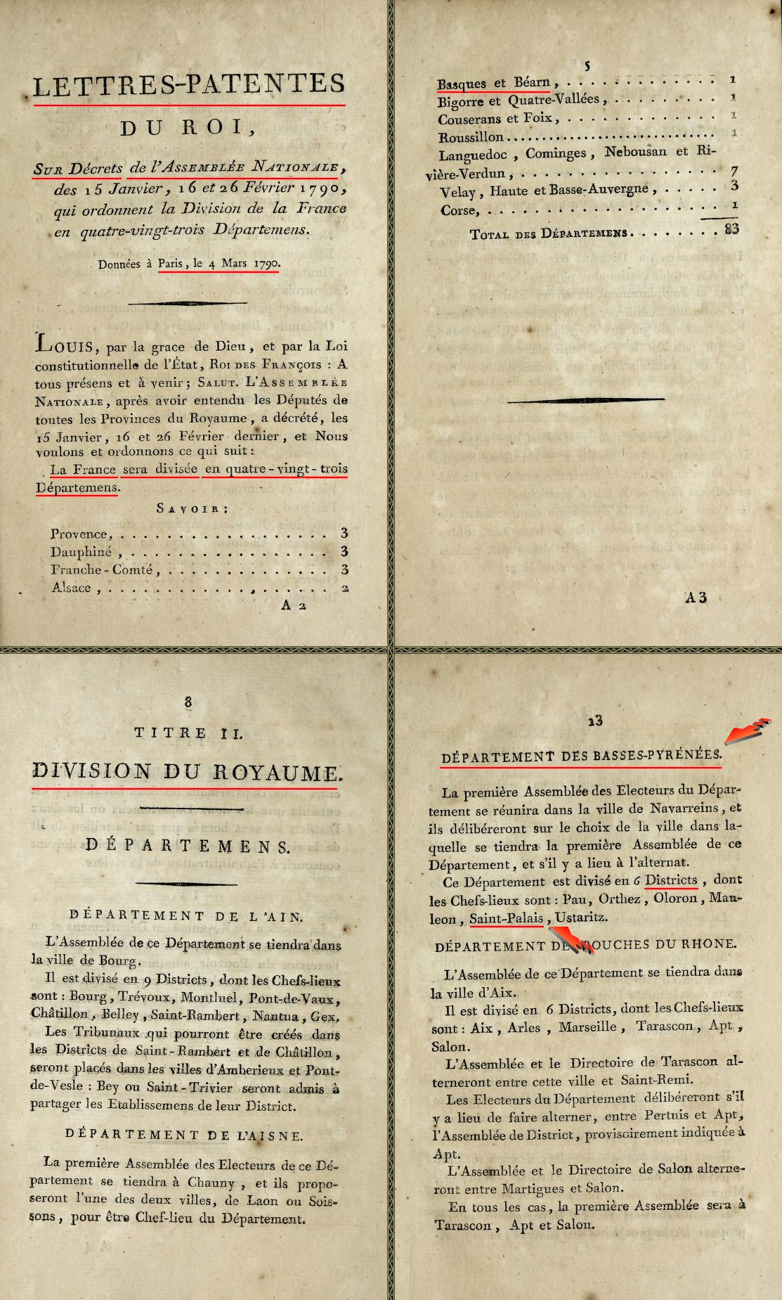 2 "Louis par la grâce de Dieu, Roi de France et de Navarre à tous présents et à venir, Salut, nous nous sommes fait rendre compte de l'état actuel des Hospices qui avoient été fondés anciennement pour la retraite des pèlerins à Saint-Palais, à Utxiat et à Harambels dans notre Royaume de Navarre ; nous avons reconnu que depuis que les Pèlerinages ont cessé lesd. Hospices sont restés presque sans aucune utilité et que leurs biens sont employés à des objets étrangers à leur destination primitive et nous avons jugé convenable de prendre des mesures pour les y ramener autant que les circonstances peuvent le permettre, en les destinant à former un hôpital dans la ville de Saint-Palais [Donapaleu] qui étant la capitale de notre royaume de Navarre, nous a semblé plus susceptible que tout autre de recevoir un pareil établissement". En Bibl. 50.26.