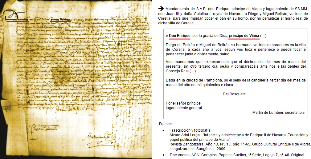 deste nombre, Principe ... heredero deste Reyno de Nauarra ... hizo al ... Reyno
