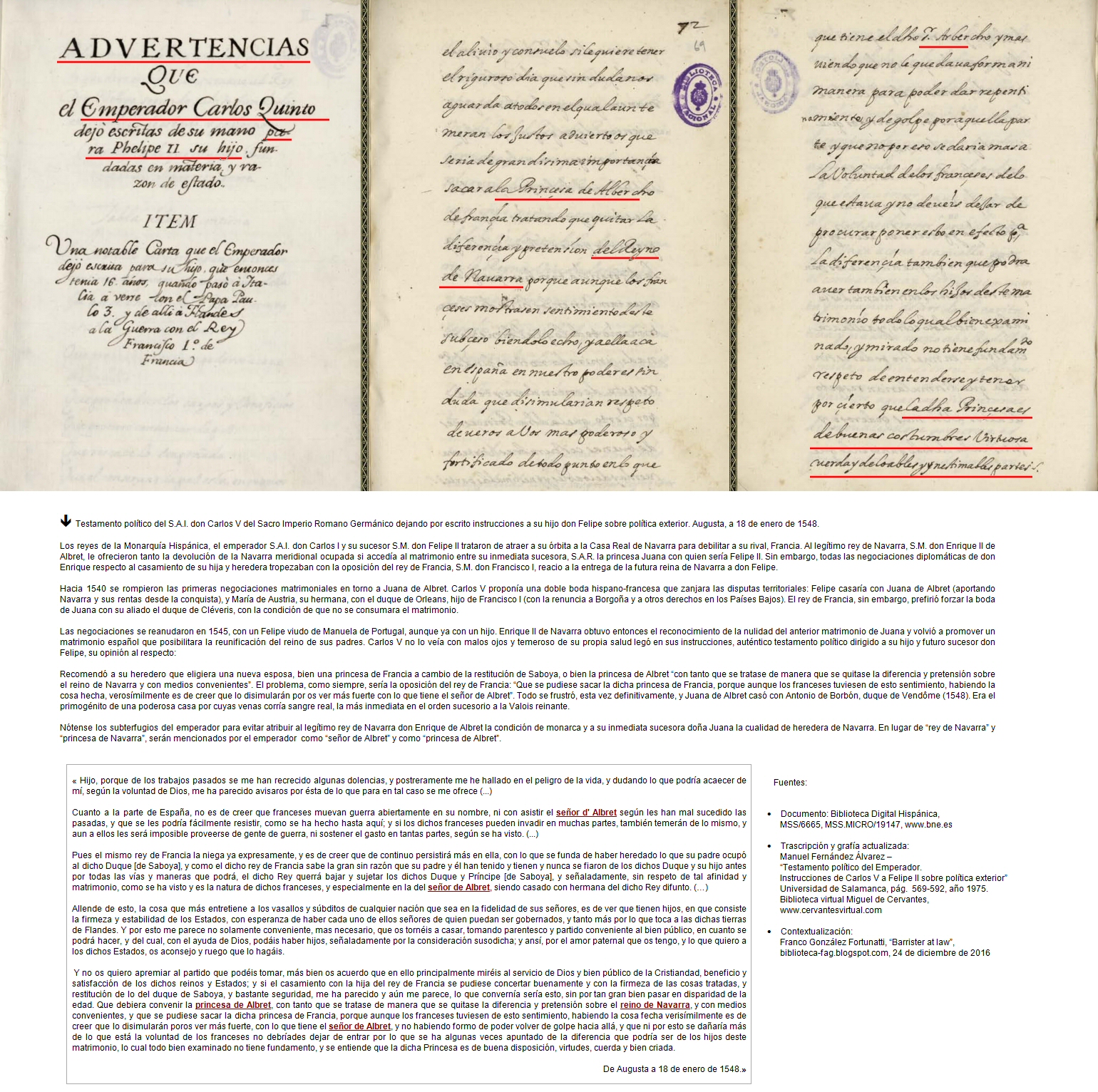 “Advertencias que el Emperador Carlos V dejó escritas para su hijo Felipe II, en