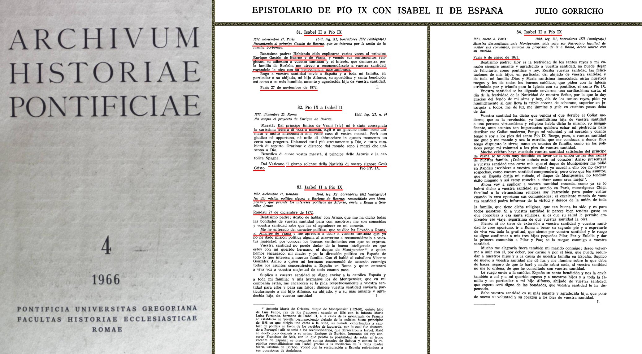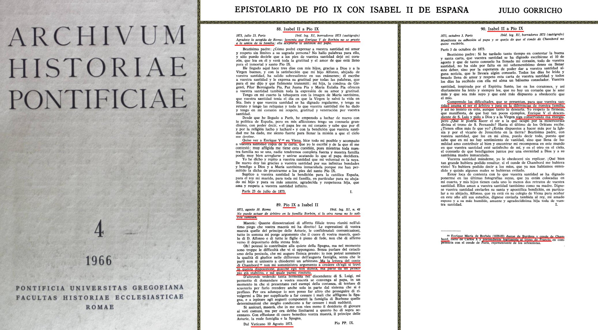 (1966)”, Julio Gorricho "Epistolario de Pío IX con Isabel II de España",