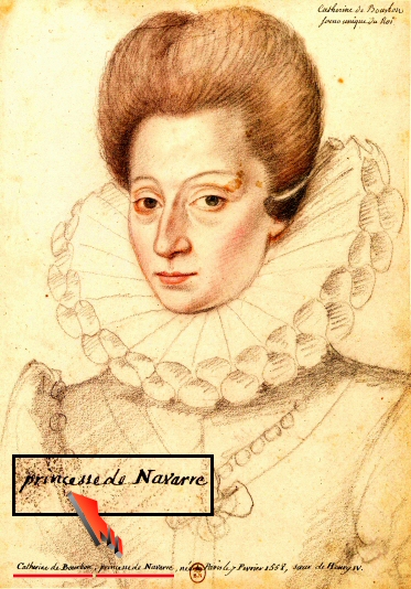 “Catherine de Bourbon, princesse de Navarre, née à Paris le 7 février 1558, sœur