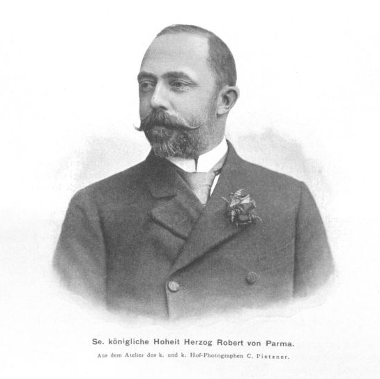titular del trono de Francia desde la "fusión" de 1873 [ Los "legitimistas" entendían que una vez fallecido el conde de Chambord sus pretendidos derechos al trono francés recaían en los descendientes Borbones del rey de España Felipe V por vía primogénita masculina, que recayendo sobre los descendientes de Carlos María Isidro de Borbón, primer pretendiente carlista bajo el nombre de Carlos V y muerto en 1855, que a su vez sus derechos recayeron en su descendiente Juan III, padre del pretendiente carlista Carlos VII, que recibió la titularidad del carlismo tras abdicar su padre en sus derechos y obligaciones en él el 3 de octubre de 1868. Durante el bautizo de su segundogénito hijo varón de su segundo matrimonio, acaecido en el gran salón del palacio de Piánore 5 días después del nacimiento de Javier, Roberto había entregado al pretendiente Carlos VII y su mujer Margarita (hermana de Roberto), presentes en la ceremonia junto a su sucersor Jaime, las insignias de la Orden de San Luis de Parma. El arzobispo de Luca, monseñor Ghilardi, impuso al neófito el nombre del patrón de Navarra, por deseo expreso de Roberto, que había tomado afección al santo cuando combatió (sin saberse heredero del reino de Navarra) en la Guerra Carlista. El despego de Carlos VII hacia su mujer Margarita de Parma, hermana de Roberto de Parma, restó las simpatías entre Roberto y Carlos VII, llegándose a cruzar durísimas cartas (24/04/1904) entre el pretendiente rey carlista y el rey natural de Navarra. Margarita vivía con sus hijos en La Tenuta Reale, la villa que había adquirido su padre el duque Carlos III de Parma, mientras que el carlista Carlos VII lo hacía en París, con una preciosa actriz húngara de 18 años (Paula de Somoggy). Margarita de Parma murío (1893) abandonada por su marido en la "tenuta Borbone", cerca de Viareggio, donde fue inhumada. titular del Reino de Navarra y del Ducado de Parma A finales de siglo, Roberto de Parma era uno de los príncipes más acaudalados de Europa. No sólo habían recaído en él las herencias de sus abuelos Carlos Luis y María Teresa, con más de 20 haciendas en Toscana, sino también la cuantiosísima herencia de sus tíos los condes de Chambord (fallecidos sin hijos), que suponía un palacio en Austria (Frohsdorf) y el impresionante castillo de Chambord. A éstos se unía el de Wartegg, que adquiriera en Suiza su madre Luisa María para servirle de residencia en el exilio. Conservaba por deferencia del Imperio asutríaco la nacionalidad parmesana, ya inexistente, los honores debidos a un infante de España y la calidad de soberano extranjero. Su castillo de Schwarzau, cerca de Viena, gozaba de la consideración de "extraterritorio". En Italia, no había renunciado a sus derechos y no adquirió la nacionalidad italiana (los parmesanos pasaron a ser italianos tras la anexión), aunque mantenía buena relación con la administración del reino de Italia que le permitía residir en sus fincas toscanas bajo la consideración de infante de España, es decir, como "príncipe forastero". Cualquier intento de retorno para gobernar en Parma era poco probable, ya que a diferencia de lo que sucedía con los demás exiliados soberanos italianos (Nápoles, Módena o Toscana), el duque de Parma no contaba con ningún grupo leal significativo de seguidores en el que fuera su ducado. Como su sentimiento hacia los parmesanos no era correspondido, se instaló entre los luqueses. Mandó construir un imponente edificio real junto a Piánore, la vieja hacienda de su difunta abuela paterna S.A.R doña María Teresa de Saboya, duquesa consorte de Lucca y Parma. Allí residía 6 meses al año, mientras los restantes habitaba en el castillo de Schwarzau, a 50 kilómetros de Viena, donde prestaban servicio 80 personas. En ambas residencias se observaba una etiqueta regia; los chambelanes vestían las casacas con los colores de Parma y se hablaba indistintamente en italiano o francés. El castellano cayó en desuso en el seno de la familia, aun siendo infante de España, debido al proceso de afrancesamiento a que Roberto estuviera sometido bajo la influencia de su tutor Enrique, el conde de Chambord. Su castellano degrado tanto que en la corte de Madrid lo apodaron "el infante pasado por agua".