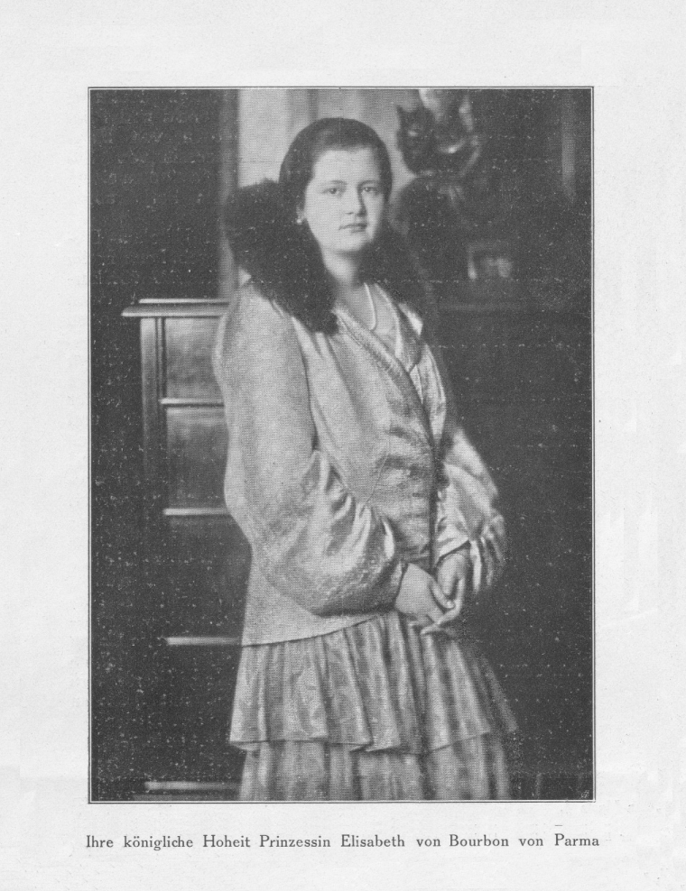 Fotografía de estudio de S.A.R. doña Isabel de Borbón Parma, nacida en Viena el 17 de marzo de 1904 (Imperio austrohúngaro). Era la primera hija del matrimonio entre don Elías de Borbón Parma y María Ana de Habsburgo, nieta por lo tanto de S.M. don Roberto I. La fotografía fue publicada el 15 de febrero de 1931, cuando doña Isabel contaba ya 26 años, en la exclusiva revista de sociedad "Wiener Salonblatt". |