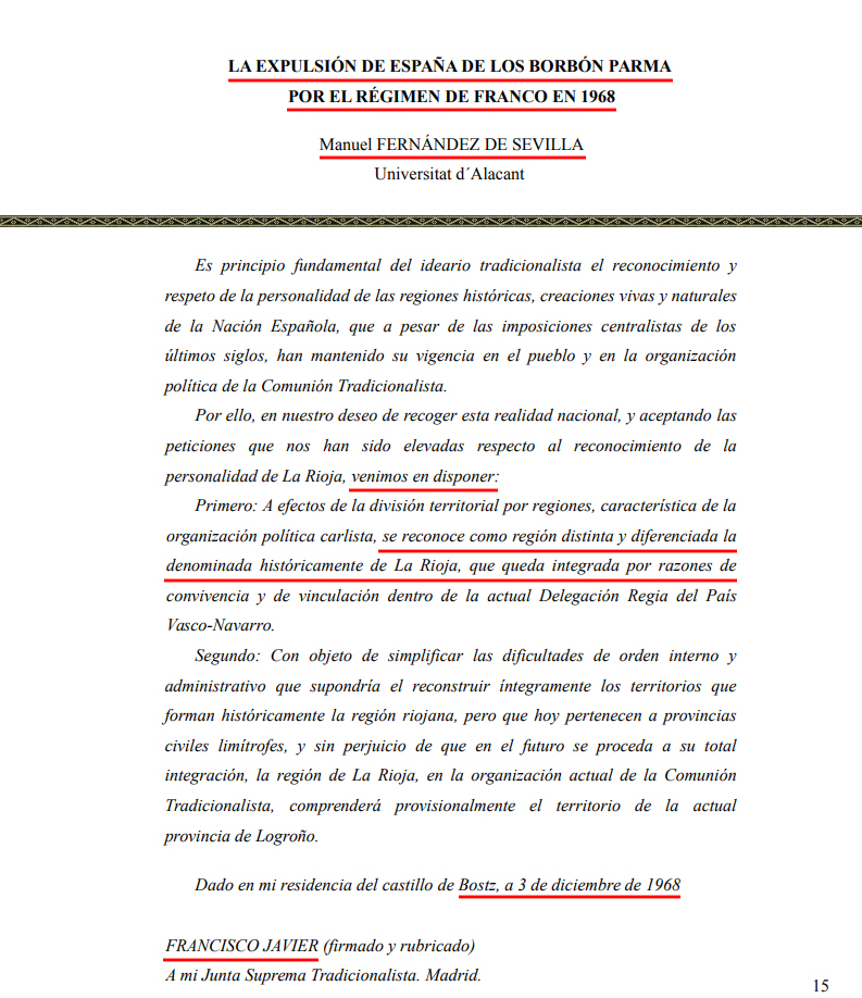 Javier, de su hijo e inmediato heredero don Carlos Hugo,
