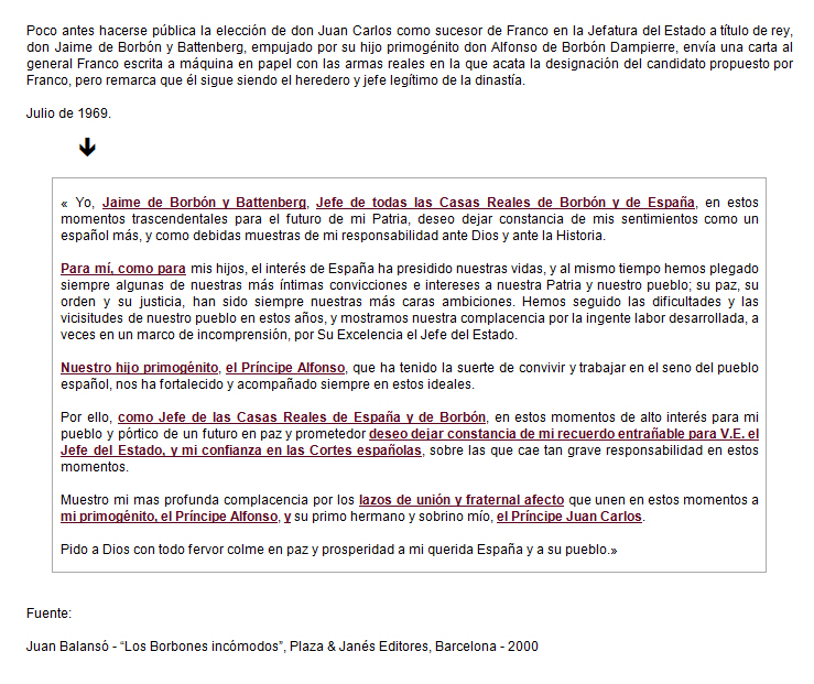monarquía española, comprendían que en caso de que el infante Alfonso