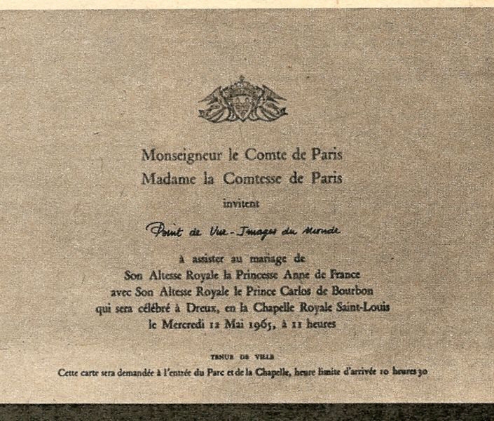 [ Según lo establecido la boda de la primogénita de Javier I, S.A.R doña María Francisca con S.A.S. el príncipe Eduardo de Lobkowicz, se celebró con el consentimiento y presencia de S.M. don Roberto II el 7 de enero de 1960 en la catedral de Notre Dame de París siendo la primera boda real celebrada en la Isla de la Cité desde la que tuvo lugar el 17 de junio de 1816 entre los tatarabuelos de Roberto II, el Duque de Berry y María Carolina de Borbón Dos Sicilias, a su vez hijo y nuera de S.M. don Carlos "de Artois", casi 150 años antes. La ceremonia fue presidida por la emperatriz Zita de Borbón Parma y su hijo heredero el archiduque Otto de Habsburgo, Jefe de la Casa Imperial de Austria, tía y primo respectivamente de Roberto II.