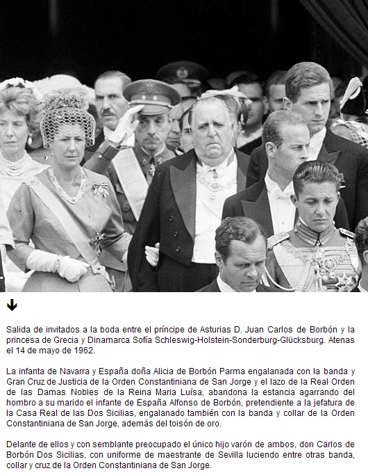 referenciar: Almanach de Gotha. Annuaire généalogique, diplomatique et Statistique - 1910 (147e année) Wiener Zeitung - 01/10/1912 Österreichs illustrierte Zeitung - 06/10/1912 Mundo gráfico - Año IV. Núm 128, 08/04/1914 / Año XX. Núm 961, 02/04/1930 Das interessante Blatt - 25/05/1922 Wiener Salonblatt - 15/02/1931, 26/03/1933, 09/02/1936, 19/04/1936, 03/05/1936, 27/06/1937 Wiener Sonn- und Montags-Zeitung - 02/03/1936 Neues Wiener Tagblatt - 31/05/1939 Baron Hervé Pinoteau - “Panorama de l'héraldique capétienne contemporaine” - 1955 Domingos de Araujo Affonso, Hubert Cuny, Simon Konarski, Alberto de Mestas et Baron Hervé Pinoteau - “Le sang de Lous XIV” - 1961 Ruolo del S.M.O. Constantiniano di S. Giorgio - “Nomine e promozioni del S.M.O. Constantiniano di San Giorgio, fatte da S.A.R. il Principe Don Alfonso, Duca di Calabria, Conte di Caserta ed Infante di Spagna, attuale Gran Maestro” - 23/01/1963 Pompes Funèbres Générales - Administration Centrale - Paris - “Noms et Adresses des personnes ayant assisté aux obsèques de Monsieur Georges Loche” - 04/01/1964 Baron Hervé Pinoteau - “Nouveau panorama de l'Héraldique capétienne contemporaine et quelques lignes sur des questions connexes” - 1976 Juan Balansó - “La Familia Real y la familia irreal” - 1992 Cercle d'Études des dynasties royales européennes - “Le Royaume d'Espagne, Le Duché de Parme” - 1997 Sébastien Ray - “La Succession Théorique des Rois de Navarre” - 2003 P.Conforti, M.B.Crispo, A.Grassi - “El Patrimonio heráldico de la Casa de Borbón-Parma” - 2004 Gianfranco Rocculi - “Araldica della Real Casa Borbone Parma. Lo stemma del Ducato di Parma, Piacenza e Stati annessi” - 2008 Dynastie Capétienne : site sur la généalogie de la Dynastie Capétienne - dynastie.capetienne.free.fr - 2008 Olivier Coutau-Bégarie - “Boutons de livrée royale” - 14/12/2010 Christine Maisel-Schulz - “Kinderlandverschickungen österreichischer Kinder nach Spanien in den Mangeljahren nach dem Zweiten Weltkrieg” - 2010 Luis Manuel de Villena Cabeza - “Genealogía Manuel de Villena” Geneanet.org - 2013 Rodrigo Moreno (@romo_b2s) - “Glashütte” instagram.com - 25/06/2017 Franz Stern - “Jagdgut Glashütte” anblick.at - mayo 2017 |